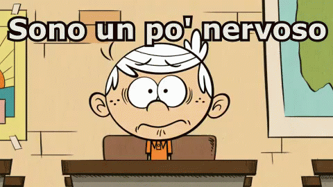 Lincoln Loud from The Loud House is a little nervous on his first day of school, trying to hide at his desk.
