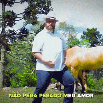Professor Noslen, the teacher, humorously dances in a field next to a horse, with the caption 'Don't Get Heavy My Love'.