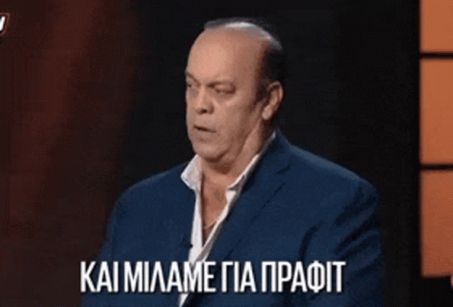 Luben discusses profit on Dragons Den, speaking passionately in a blue suit.