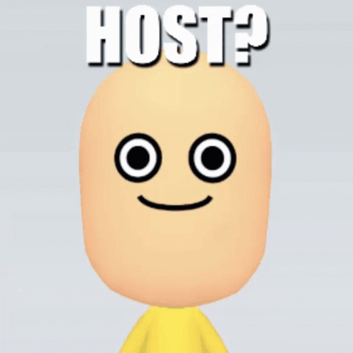 Provemkw Provemk8's Mii character with a smiling face asks 'HOST?' above its head.