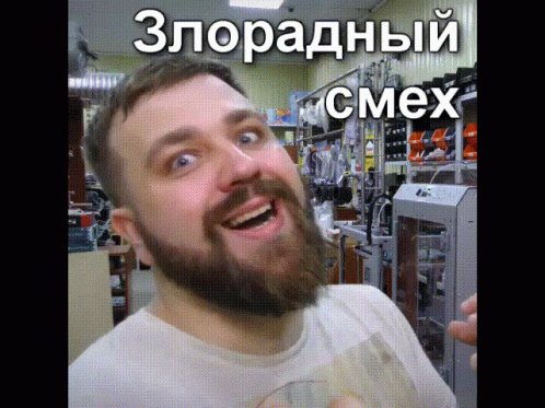 Anatoly (Tolya) Yunakh with a malicious, gleeful laugh, captured with the caption 'Malicious laugh'.