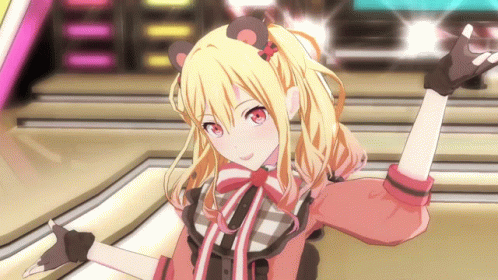 Tenma Saki from Project Sekai Colorful Stage smiles, wearing a pink and plaid outfit with bear ears.
