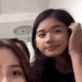Bini and Aiah smiling and posing playfully, with one putting her hand behind her ear.