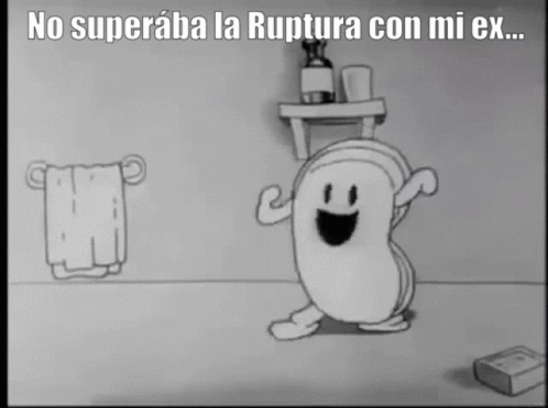 Cartoon character dances happily after watching a Transcendental Psychology video to get over an ex.