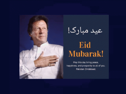 Imran Khan extends Eid Mubarak greetings, wishing peace, happiness, and prosperity to Pakistan.