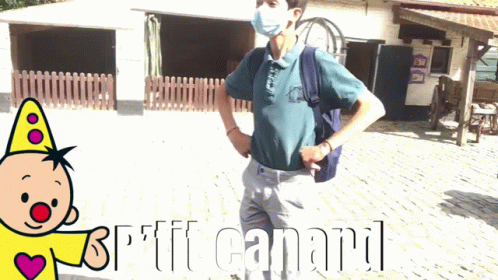 A man wearing a face mask stands in front of a building with 'P'tit canard' text overlaid on the video.
