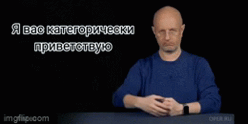 Dmitry Puchkov, known as Goblin, delivers his iconic greeting 'I categorically welcome you' with a serious expression.