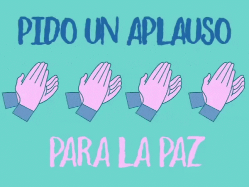 Animated hands clap for peace with the Spanish text 'Pido un aplauso para la paz' (I ask for an applause for peace).