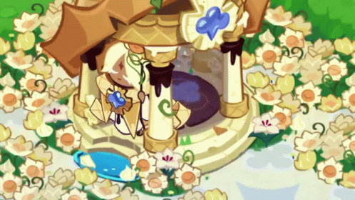 Pure Vanilla Cookie sits peacefully in a flower-filled garden, next to a charming gazebo.