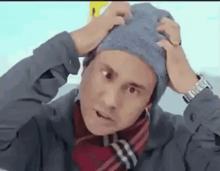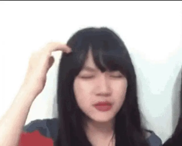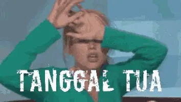 Ayu Ting Ting in a red dress, feeling dizzy with the caption 'Bikin aku pusing...'.