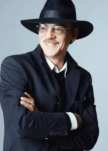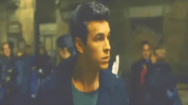 A long-haired man being interviewed makes a peace sign and eats a white substance from his fingers.