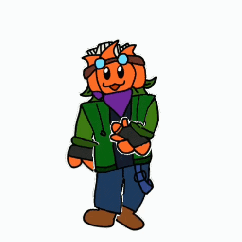 A cartoon pumpkin character from Plants vs. Zombies dances in a green jacket and goggles.