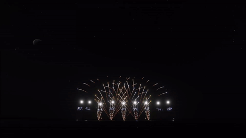 A spectacular Pyroworks fireworks display lights up the night sky with vibrant colors.