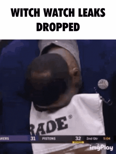A man's excited reaction to Witch Watch leaks dropping, putting on glasses and smiling during a basketball game.