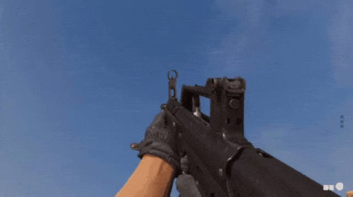 First-person view of a QBZ83 assault rifle reload animation against a clear blue sky.