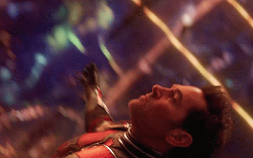 Ant-Man (Scott Lang/Paul Rudd) grows large, embiggening in the Quantum Realm during Quantumania.