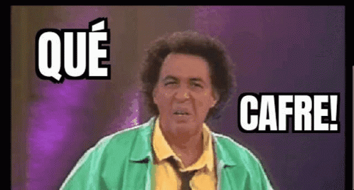 Man in a green jacket makes a funny, confused face while exclaiming 'Qué Cafre!' in this meme.