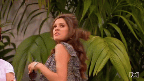 Catalina Londoño reacts with surprise, her hair flying, in a scene from Casa De Reinas.