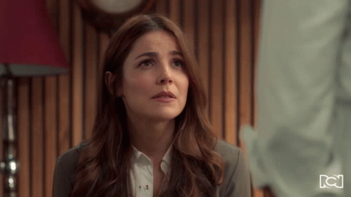 Dany (Juliette Pardue) looks confused and questioning, expressing 'What are you talking about?' in a professional setting.