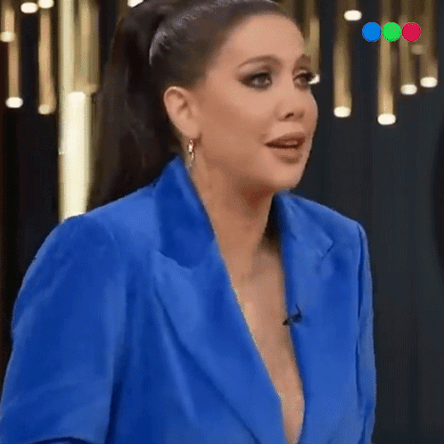 Wanda Nara, wearing a blue blazer, asks 'What do I do?' on the set of MasterChef Argentina.