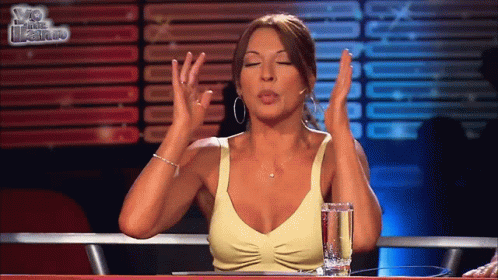Amparo Grisales reacts with "¡Qué Horror!" on Yo Me Llamo, expressing strong disapproval with hand gestures.