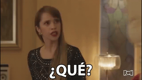 Ingrid from the Colombian telenovela 'Lalas Spa' reacts with a confused expression, exclaiming '¿QUÉ?'