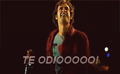 A man passionately sings into a microphone, shouting 'TE ODIOOOOO!' (I HATE YOUUUUU!) with intense emotion.
