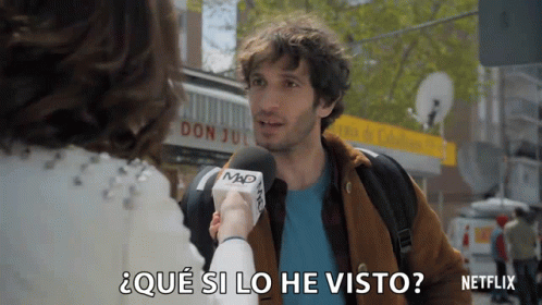 Quim Gutierrez being interviewed on the street for Netflix's El Vecino, responding to 'Have I seen it?'