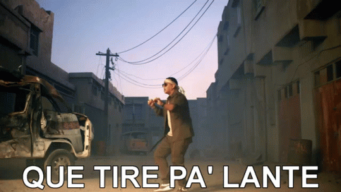 Daddy Yankee performs his hit song 'Que Tire Pa' Lante' in a vibrant street setting, showcasing his iconic dance moves.