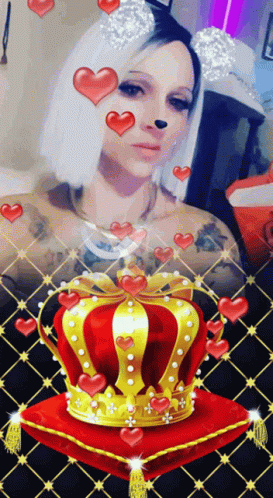 Yessicka poses as Queen Bee, adorned with hearts and a crown filter.