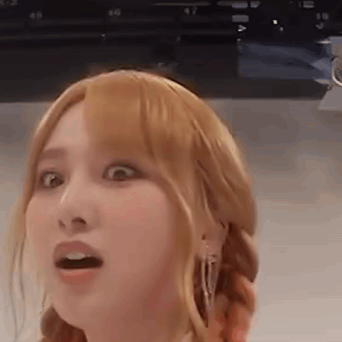 Juri from Queendom Puzzle shows a shocked and surprised expression with wide eyes and open mouth.