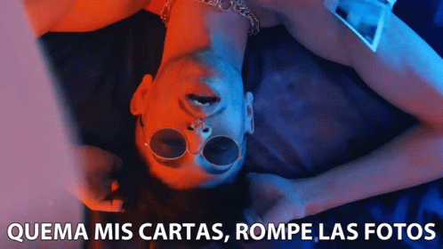 A man in sunglasses lies upside down, surrounded by photos, with the text 'Burn My Letters, Break The Photos' displayed.