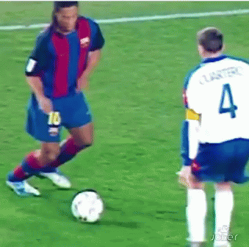 R10 Gaucho showcases his incredible dribbling skills, leaving a defender in his wake on the soccer field.