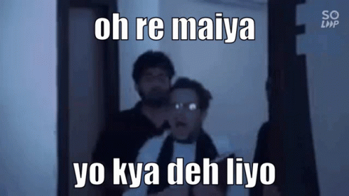 Three men reacting with shock, featuring the Hindi phrase "Oh re maiya yo kya deh liyo" from the R2h meme.