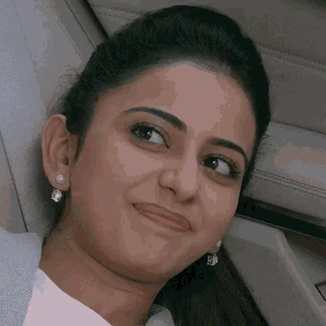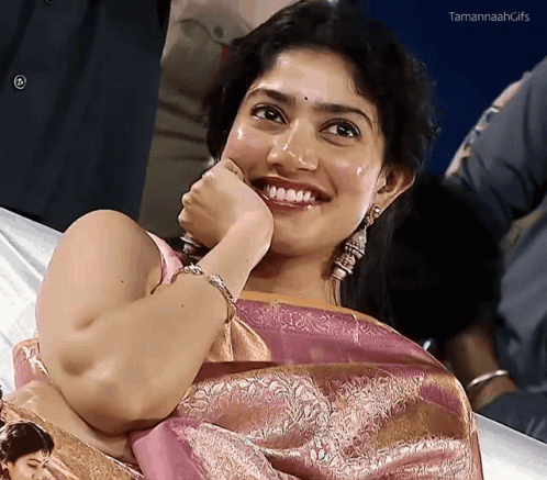 Raashidhf, dressed in a beautiful pink saree, smiles brightly and playfully covers her mouth with her hand.
