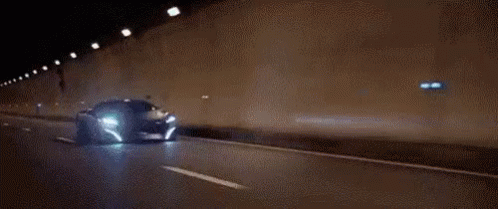 A sleek, futuristic car with bright lights speeds through a dark tunnel at night, showcasing its modern design.