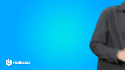 A man holds a camera up to take a quick photo, smiling against a vibrant blue background with the Radio.co logo.
