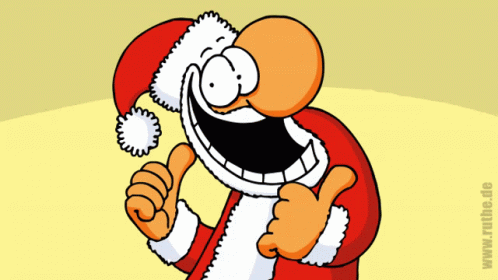 Ralph Ruthe's cartoon Santa Claus gives two enthusiastic thumbs up, featuring his signature style.