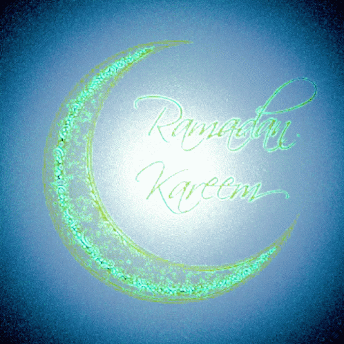 A glowing crescent moon with 'Ramadan Kareem' text, celebrating Ramadan Mubarak.