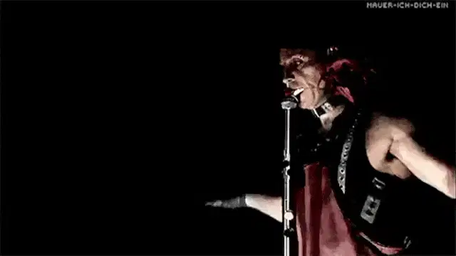 Rammstein members Till Lindemann and another man sitting on a couch, likely for an interview.