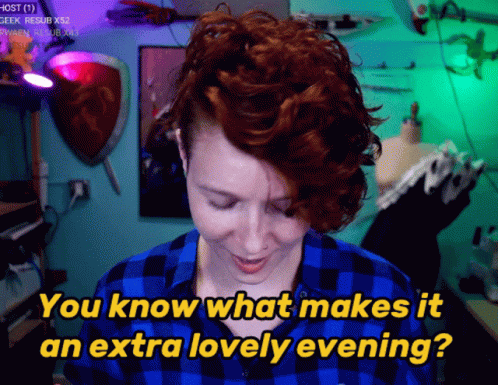 A woman in a blue plaid shirt smiles and says, 'You know what makes it an extra lovely evening? ALL OF YOU.'