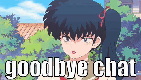 a picture of a girl with a ponytail and the words goodbye chat