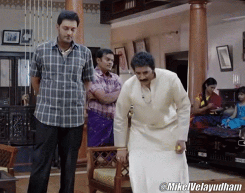 Rao Ramesh dramatically asks 'Where are the enemies?' in a scene from a Telugu movie.