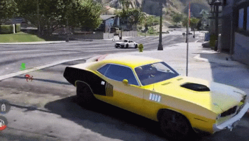 Rata Svrp drives a yellow muscle car in Grand Theft Auto V Roleplay, parked by a fire hydrant.