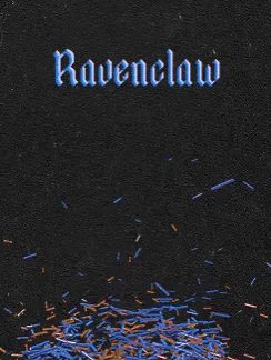 The Ravenclaw house crest from Harry Potter forming from blue and bronze particles.