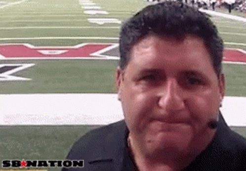 Former NFL player Tony Siragusa is seen on a Baltimore Ravens football field, smiling at the camera.