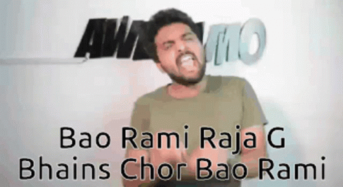 A man with a beard, Razasamo Baorami, makes a funny face with the text 'Bao Rami Raja G Bhains Chor Bao Rami' displayed.