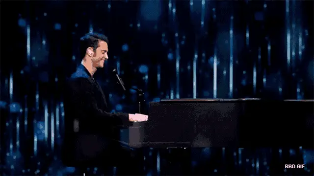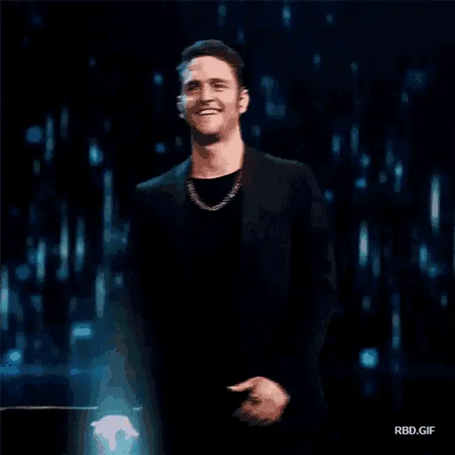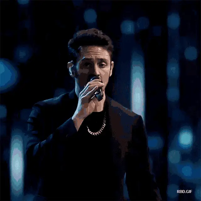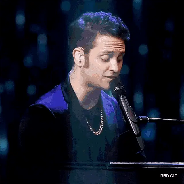 Christopher Uckermann performs 'Ser O Parecer Live' on a dark stage with dynamic blue lights.