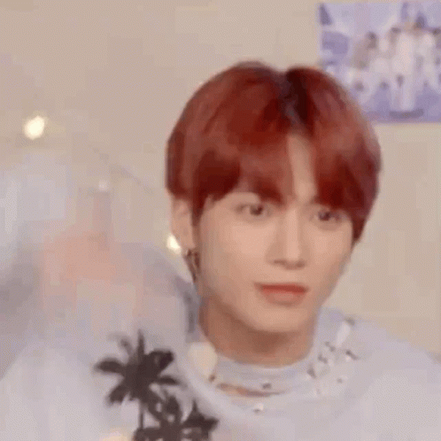 TXT's Beomgyu or Taehyun making a playful gesture with a green plant, showing a charming moment.