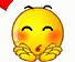 A cute yellow emoji expresses love by covering its mouth, then blowing a kiss with floating red hearts.